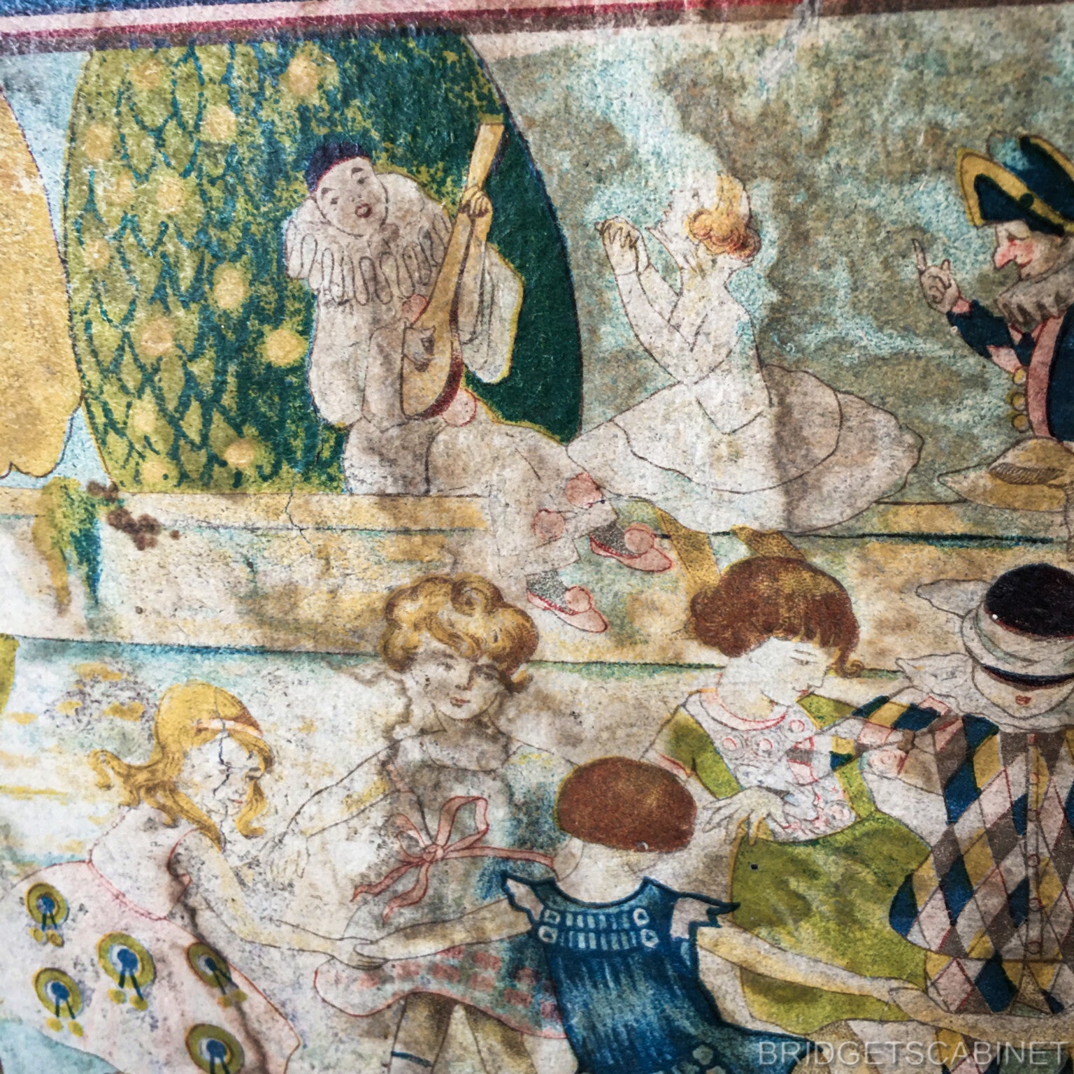Bridget's Cabinet found this beautiful 19th. Century french Guignol puppet theater, it comes with 3 original Guignol puppets. it is a small-sized theater which is very hard to find, the height of this theater is 26.37 inch. it still has all its stunning vibrant original colors, it has a nice hand-painted scene on the front. As mentioned this theater comes with 3 original hand-made Guignol dolls which is a very unique find. These were the toys for the wealthy in those days. Considering it is about 140 years old this beauty is still in very good condition, there is, of course, some wear,