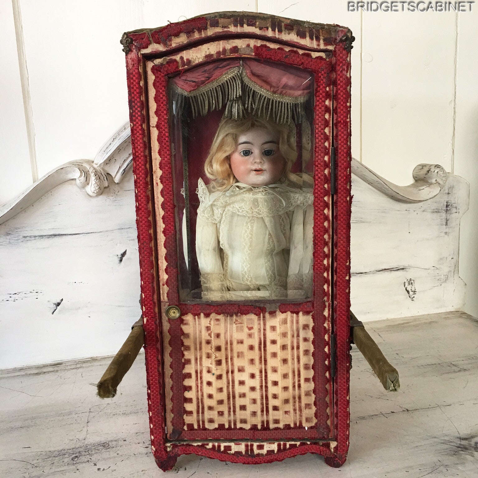 Bridget's found this amazing late 19th. Century large French doll sedan chair, it is a very unique one because of its large size, we had some of these sedan chairs in the past but they were all much smaller. this one will fit a large doll.