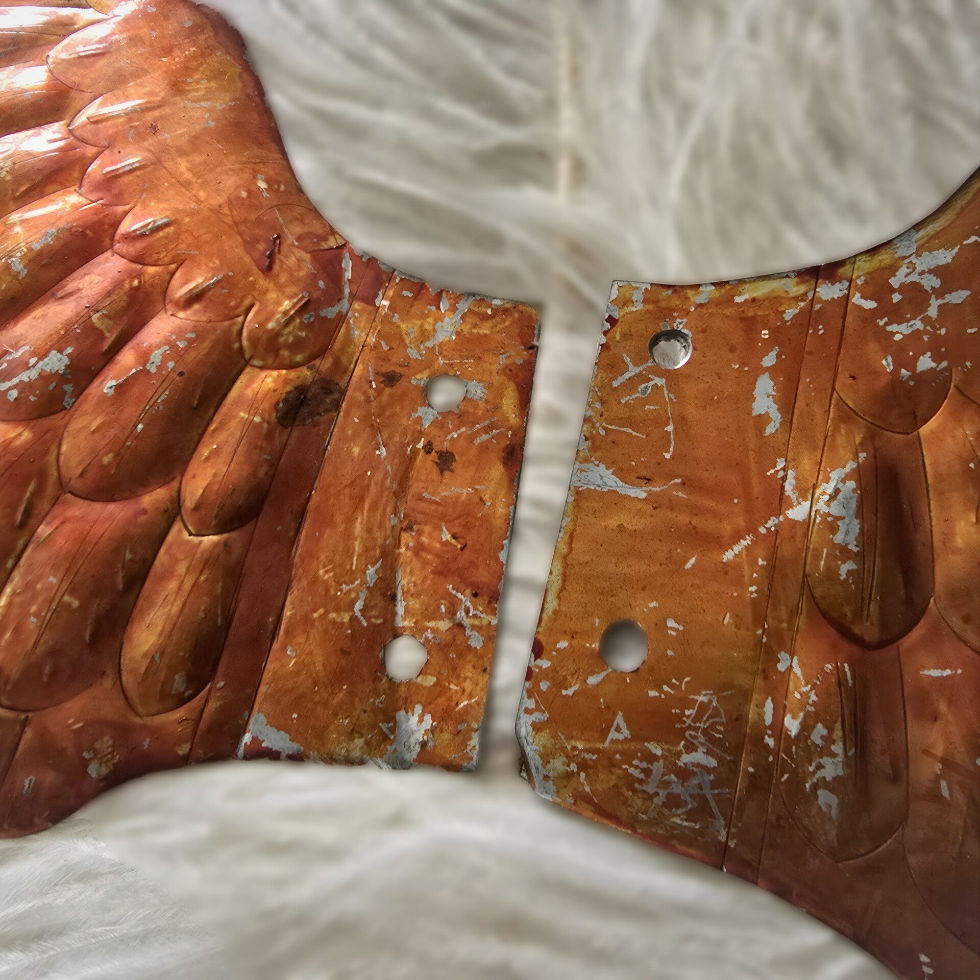 Likely once used in a theatrical performance, costume, or religious procession, the wings are child-size and have two small holes at the base—originally used to connect or fasten them, now perfect for hanging with wire or ribbon.